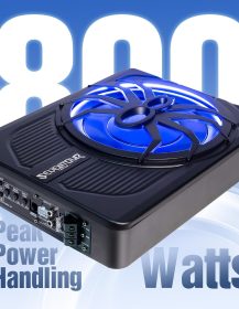 10″ Upgrade 800W Slim Under Seat Powered Car Subwoofer, Car/Truck Audio Sub Built in Amplifier amp Combo Package, with Blue LED Light (Subwoofer+Installation Wire Kit)